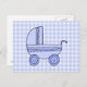 Baby Stroller. Light Blue on Check Pattern. Postcard