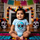Celebrate Dia de Muertos with this blue baby bodysuit, where the cute baby sugar skull and your personalised message come together to create a joyful and memorable tribute to this cherished tradition. 🌸💙💀