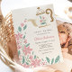 Baby Shower invitation featuring a border of pink flowers and greenery flowing from a cute whimsical teapot. Customise with your information for the mum to be. Click "click to customise further" to change the font style, size or colour.