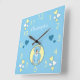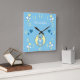 Baby teddy bear blue with love hearts and a name square wall clock