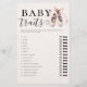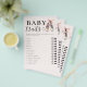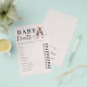An elegant girl baby shower "baby traits" game sheet for a girl baby shower party with a ballet / ballerina theme. It features a watercolor illustration of a pair of elegant ballerina shoes in watercolor. Part of the "Baby Ballerina Shower Invitation Suite" girl baby shower invitation set.