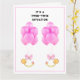 Twin girls newborn baby cards featuring girl twin babies and pink balloons.