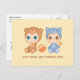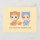 Baby Twins First Birthday Cat Bear Invitation 2 Postcard
