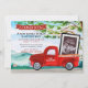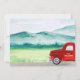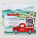 Announce your pregnancy and your new baby with this rustic and cute baby announcement with your baby's ultrasound "framed" photo with a black frame being transported in the back of the vintage red truck on a beautiful blue and green spring/summer watercolor landscape background and a tree canopy. The card features the words "Coming Soon" upon a red banner, the phrase "A new little human is on the way", your own ultrasound photo, names, time of arrival, and your baby's name on the door of the truck. Easy to customise with your own ultrasound or other photo and baby information. This card is perfect to announce your little one and sure to get a lot of smiles.