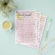 Have some fun at your shower with this easy activity! Add your personalised text using the template form. Use the value paper to make it easier to write on (and save money too!). Answers are on the back.