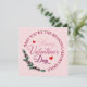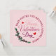 This sweet Happy Valentine's Day card says "Baby you're the reason I always smile in a circular template. Inside that it says Happy Valentine's Day in an elegant script and has two red hearts. It's decorated with a spray of greenery and pink flowers. The reverse side has the same pink background and you can personalise it however you like on the back. Write a special personal message to your loved one. Change the font style or colour. Possibilities are endless! Just use the "personalise this template" button and then "customise further" to change the font and colour. (Note: only the font and colour on the back can be changed"
