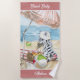 Adorable beach blanket featuring a baby zebra enjoying a day at the beach under a beach umbrella, with a beach ball, a basket of seashells, and a coconut drink. Personalise this one prior to placing it into your shopping cart.
