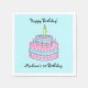 These turquoise blue Happy Birthday cake paper party napkins are great for celebrating a first 1st birthday or any birthday. The napkins are personalised with the name and "1st birthday", all customisable. The whimsy art features pink and turquoise birthday cake with one candle on a turquoise blue aqua background napkin. These napkins are easy to customise for a cute and fun birthday party!