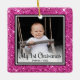 This lovely Baby's 1st Christmas photo ornament with a pink glitter edge, the words "My 1st Christmas", your child's name and the year will look beautiful on your tree. You'll cherish it and enjoy taking it our every year to put on your tree.