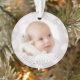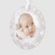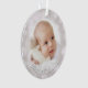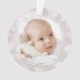 Celebrate the first holiday season with your new baby with this cute Holiday Photo Ornament. Add your favourite baby or children's photos. Change the text for to create a unique personalised keepsake memento to hang on your tree and enjoy for years to come, or send as greetings to friends and loved ones far away. Can also be used to create your own fun and memorable gift tags or birth announcements for the special people on your list ... mum, dad, grandparents, sisters and brothers, etc. 2-sided, 2 photos -- Frosty white wreath frame with optional custom curved text.