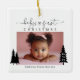 Baby's 1st Christmas Photo Ceramic Ornament. Create your baby's very first keepsake ornament by uploading a photo and personalising the template with baby's name and date of birth. Shown in black and white but ALL COLORS ARE EDITABLE. You can choose new colours to coordinate with your baby's photos, including colours for background, text, and design elements. © Kimbellished, LLC