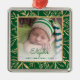 Celebrate baby's first Christmas with this beautiful keepsake ornament. Easily replace the sample image with your own favourite photo and customise it with baby's name in green script font and the year below. A white gradient screen helps make the text pop. The photo is set off by an elegant square frame decorated with hand-drawn gold faux foil foliage on a green background.
