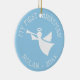Baby's 1st Christmas tree white angel ornament. Add your own photo image on the back optionally. Elegant bird design with stylish typography template for name and date (2017) . Beautiful keepsake for first Christmas of newborn child. Customize background color to girly pink or blue for new baby girl or boy. Gold glitter string included. Custom xmas decorations for kids and new mommy or daddy / parents. Happy Holidays!