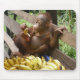 This cute baby orangutan is enjoying a picnic of bananas, sitting on the shoulders of another orphan at the sanctuary in Indonesia. Sit back... relax... and use your toes to hold your banana. It makes peeling it sooooo much easier.