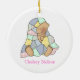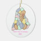 Adorable round ornament with lovely country primitive artwork of a baby under a patchwork quilt. Text on the front reads, Baby's First Christmas 2010, and on the back is the child's name. Personalise all the text for your child. Great Christmas tree ornament you and your child will love for years to come. Makes a sweet baby gift too.