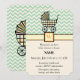 Take a stroll with this fun, stylised pram decorated with bright pink, orange, green, and blue stripes on the cover and a pattern reminiscent of wooden blocks on the body. The pastel mint and cream zigzags in the background accent the brightly coloured stroller. Customise the monogram in the big block with the soon-to-be little one's last initial and the text below with the details of your baby shower to make this invitation a perfectly personalised way to invite your family and friends to your celebration. Be sure to check out the full Baby's Blocks Stroller collection for more great gifts and products for a baby shower or the little one in your life.