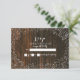 A rustic and elegant wedding r.s.v.p. invitation featuring an illustration of baby's breath over a barn wood inspired background.