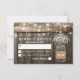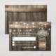 MASON JAR STRING LIGHTS WEDDING RSVP CARDS | Featuring a country barn dark oak barrel background, string lights, mason jar & baby breath flowers, burlap fabric with your initials stamped over the top and modern wedding wording. Find other wood rsvp cards at http://www.zazzle.com/special_stationery*