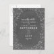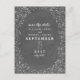 A wedding save the date postcard featuring a border of baby's breath over a chalkboard inspired background. Personalise the text. Matching wedding invitations and other coordinating items can be found at Jill's Paperie.