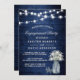 Baby's Breath String Lights Rustic Navy Blue Engagement Party Invitation.