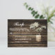 This elegant, rustic wedding RSVP response card features a distressed barn wood background and a mason jar filled with baby's breath. Perfect for your vintage or rustic themed wedding.