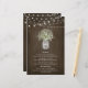 Design features a country rustic watercolor wood grain background with elegant fairy twinkle string lights. Template also features a mason jar filled with baby's breath. You can change the demo initials on the jar to your very own.