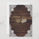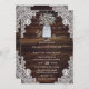 Rustic country baby's breath wedding invitation featuring baby's breath flowers inside a mason jar against a rustic wood background decorated with white floral lace and string lights. Easily personalise this romantic baby's breath wedding invitation for your rustic country, or barn wedding party.