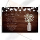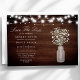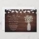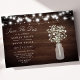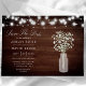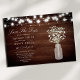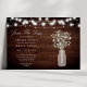 Announce your wedding in charming rustic style with this "Save The Date" card featuring delicate baby's breath in a mason jar against a wooden background, illuminated by string lights. Perfect for setting a warm and inviting tone for your special day, this card combines rustic elegance with a touch of romance. Customise with your event details to create a memorable and personalised announcement that reflects your unique celebration.