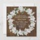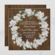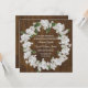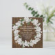 Rustic chic square wedding invitation done in a dark wood look with graphics of white baby's breath floral wreath. Personalise all the text for your special day. Lovely invitation you will cherish for years to come.