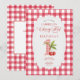 This charming invitation is perfect for celebrating a baby's first birthday! The design features a sweet cherry motif on a classic red gingham pattern, creating a delightful and festive look for your child's special day. It's a delightful way to invite family and friends to share in the joy of this milestone event.