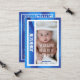 Think outside the batter's box when it's time to announce the birth of your baby, with this whimsical announcement in the style of a baseball card. Add photos of your own baby and then edit the card's text where required. The baby's last name also doubles as its team name and is displayed in a white sports font on blue jersey fabric background. In addition to the baby's weight and length, there's also an area to add the year of his draught eligibility. Where the "player bio" would normally be is the actual birth announcement, written with baseball puns. You can use the default text and simply change the names to what's relevant in your case or you can completely rewrite it in your own words.