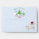 Custom Envelopes to go with Baby's First Christmas 2010 Christmas Cards - Send your friends and family this cute baby goat wearing her Santa hat on her butt and hanging an ornament on the Christmas tree out in the snowy grove of pine trees- and because she is a baby and this IS her first Christmas, Mama goat is peeking around from behind the tree to glimpse the perfect moment. It ONLY happens Once- :) Baby's First Christmas Dated 2010