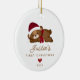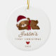 Simply perfect Baby's First Christmas ornament featuring a sweet sleeping teddy bear wearing a scarf and Santa hat. Easy to personalise with your name & year.