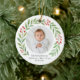 Celebrate the most precious gift of all with this beautiful Baby's First Christmas ornament. A timeless keepsake, this elegant design features a delicate watercolor wreath of festive holly, perfectly framing your favourite photo of your newborn.