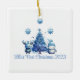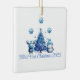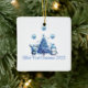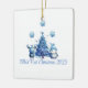 Celebrate your baby's first Christmas with adorable watercolor illustrations of a blue reindeer and snowman in front of a beautiful blue Christmas tree. Customisable for any baby's name and date.