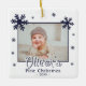 Baby's First Christmas Blue Snowflakes Photo Ornament. Lovely blue snowflakes. Baby's name in a trendy script. Personalize the ornament with your baby's photo, name and year. A lovely Christmas holiday keepsake.
