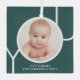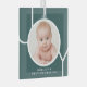 This stylish keepsake Baby's First Christmas Photo Ornament is decorated with the word JOY in white typography on a green background.
