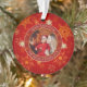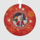 Capture your precious family moments with this beautiful Personalized Photo Christmas Ornament. Featuring a vibrant red background with a delicate gold snowflake pattern and a unique scalloped snowflake frame shape, this keepsake is the perfect addition to your holiday decor.