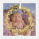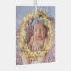The baby's first Christmas photo ornament features custom photo with beautiful gold circle overlaid on it. Easily place a memorable photo of your baby in place of the template photo as well as the name and the year to make a special holiday keepsake to celebrate the first Christmas for your new baby! Example photo on front is by Katie Smith(Source: @katiesmith654 on Unsplash).