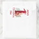 1st Christmas Oval Stickers for a baby girl or baby boy with a cute winter bunny and big red number one. Easily personalise the text. - Kate Eden Art