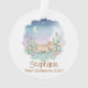 Celebrate a precious milestone with this adorable Baby's First Christmas ornament. Featuring a sweet watercolor desert pony sleeping peacefully amongst cacti under a starry night sky, it's a charming keepsake. Personalize it with the baby's name and the year for a truly special memento of their first holiday season. This ornament is perfect for new parents, grandparents, or as a thoughtful baby shower gift.