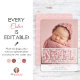 Baby's First Christmas Elegant Photo Christmas Card. A modern editable SVG design! You can keep the pink + white theme as shown or CHOOSE YOUR OWN COLORS! Edit the template in order to view the individual design layers. You will be able to select your own fill colours for all of the design elements - the leaves, berries, text, and rectangles. Personalise with your photo, greeting, and signature line. BACK: Lyrics for "The First Noel" in beautiful calligraphy. Everything on the back is editable as well - keep the colours as shown or choose a new background colour and new fill colour for the lyrics. © Kimbellished, LLC Photo credit: Alex Smith with Getty Images