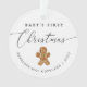 Cute Christmas ornament for a newborn baby featuring a watercolor illustration of a gingerbread cookie. The elegant script text on the top says "baby's first christmas." Add a picture on the back of the ornament.