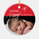 Commemorate your baby's first Christmas with this adorable hand-lettered red and white Christmas photo ornament. Personalise the ornament by replacing the photo, name and year. Matching products like pacifiers, photo cards, etc. are also available in our store. Please contact the designer if you have any design customisation requests.