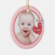 The text and baby photo on this whimsical pink heart baby's first Christmas photo Christmas ornament are easy to personalise. The non-traditional pink heart design makes for a whimsical and cute babies first Christmas (1st Xmas) ornament. Make sure to check out the back as well, as there you can customise it with your baby's name. To change the text and baby photo use the personalise options. For more extensive changes to the ornament, including changing the font, font size, font colour, text placement, picture size and/or picture placement, use the customise it option.