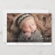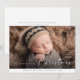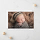Experience the magic of the holiday season with this beautiful Christmas baby announcement photo. A peaceful newborn rests amidst a soft, rustic setting, wrapped warmly, with a festive beanie as the cherry on top. The card effortlessly captures the joy and tenderness of a new arrival during the most wonderful time of the year. The elegant script and modern design details add sophistication to this memorable keepsake. Celebrate the special addition to your family and share the happiness with loved ones with this delightful holiday birth announcement. Perfect for those cherishing their baby's first Christmas or announcing a new sibling's arrival during the festive season. A card that surely warms the heart and uplifts spirit!