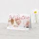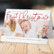 Design at the front consist of playful cursive typography of "First Christmas". Add a custom photo of your new baby and add baby's and family name. This design is modern, chic, playful and fun.