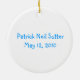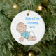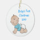 Round Christmas tree ornament, with cartoon graphics of a baby boy. Blue text on front reads Baby's First Christmas 2010. Personalise the text on the back of the ornament with your baby's name and birth date. Great baby's first Christmas ornament, and makes a sweet gift too.