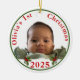 Absolutely adorable for a Christmas gift. I put photos of my baby granddaughter on each side with her name and “First Christmas”! The design even has room for the year.