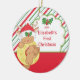 Cute personalised dated Christmas Ornament featuring an adorable baby deer sleeping on a moon set on a red & green background, just add YOUR PHOTO! Perfect for baby girl or baby boy first christmas & second christmas. A Wonder Christmas gift sure to be treasured for many years to come.